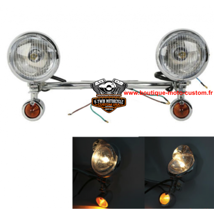 Phare additionnel + clignotant universel pour votre moto compatible avec Harley-Davidson, Honda, Kawasaki, Yamaha