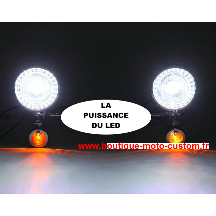 Additional LED headlight + universal flashing light for your motorcycle compatible with Harley-Davidson, Honda, Kawasaki, Yamaha
