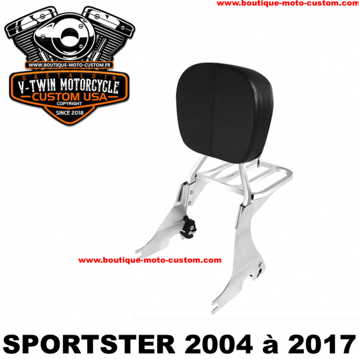 SISSY BAR CHROME A CLIPS AVEC PORTE BAGAGE POUR HARLEY DAVIDSON SPORTSTER DE 2004 à 2017