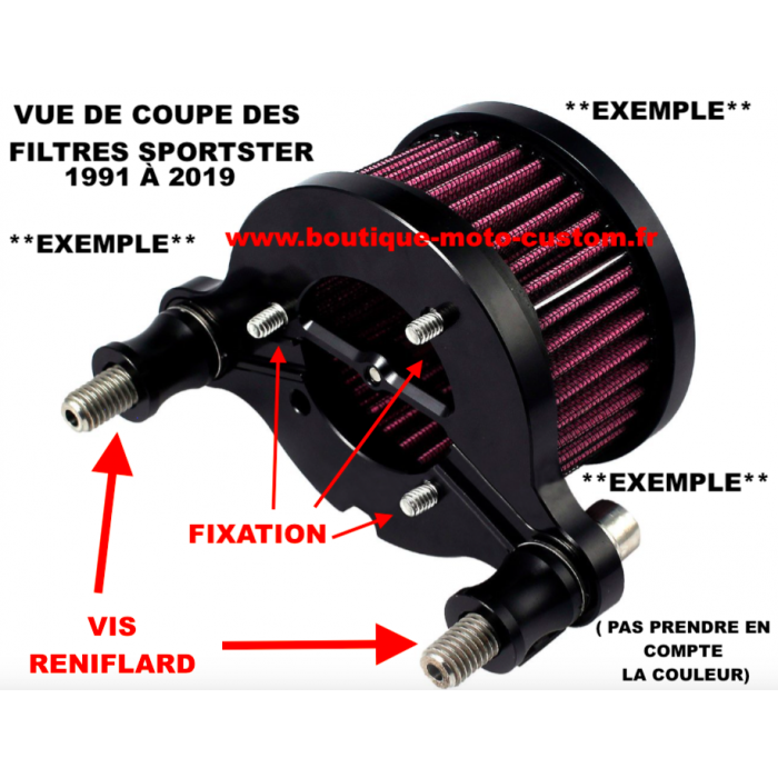 Aluminum air filter box with washable filter for Harley Davidson Sportster and XL 883 & 1200 from 1991 to today Carburetors and injections.