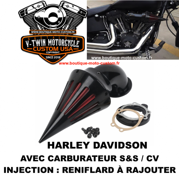 Compatible with all Harley Davidson models with S&S and CV carburetor or injection by adding a breather
