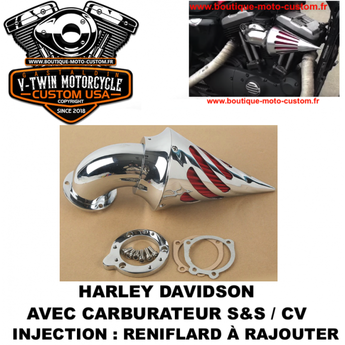 Compatible with all Harley Davidson models with S&S and CV carburetor or injection by adding a breather