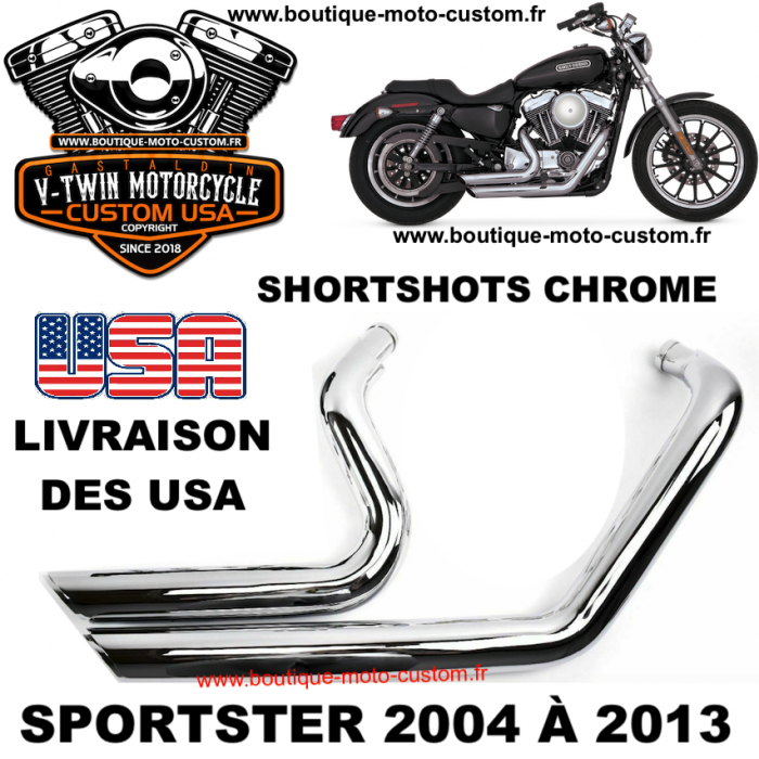 Harley Davidson Chrome Shortshots Exhaust Line for all SPORTSTER 883 & 1200 models from 2004 to 2013