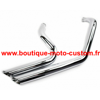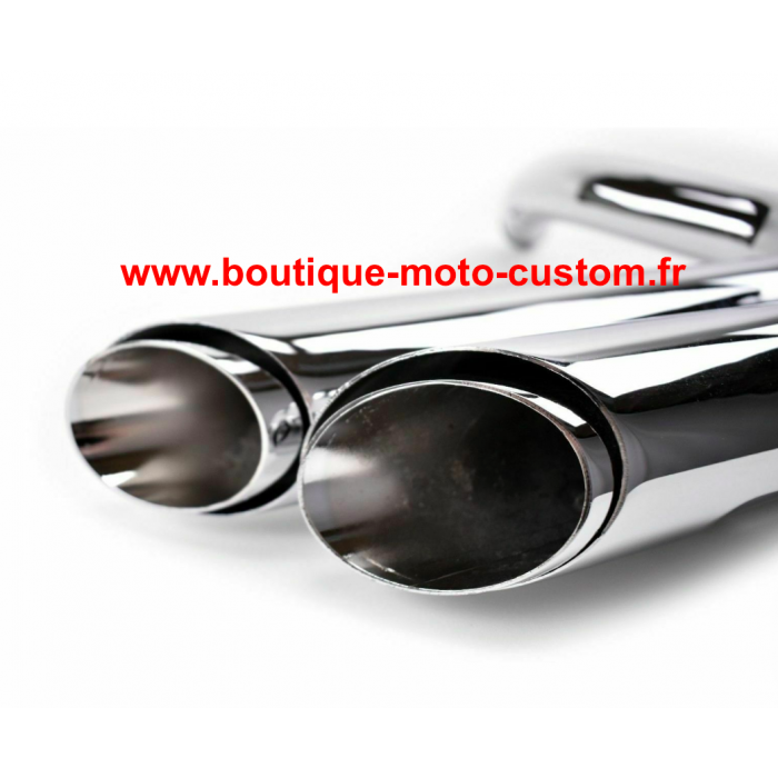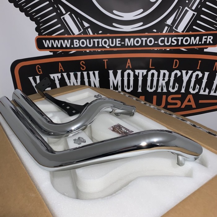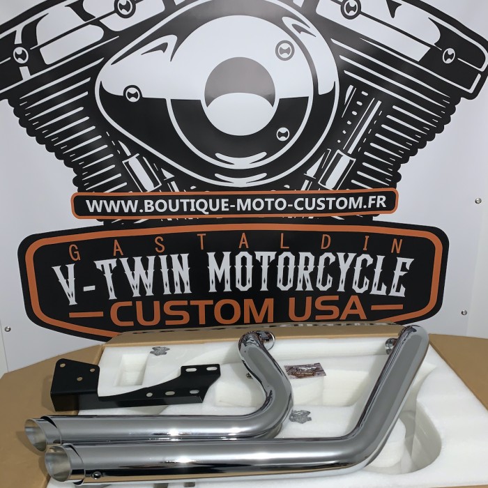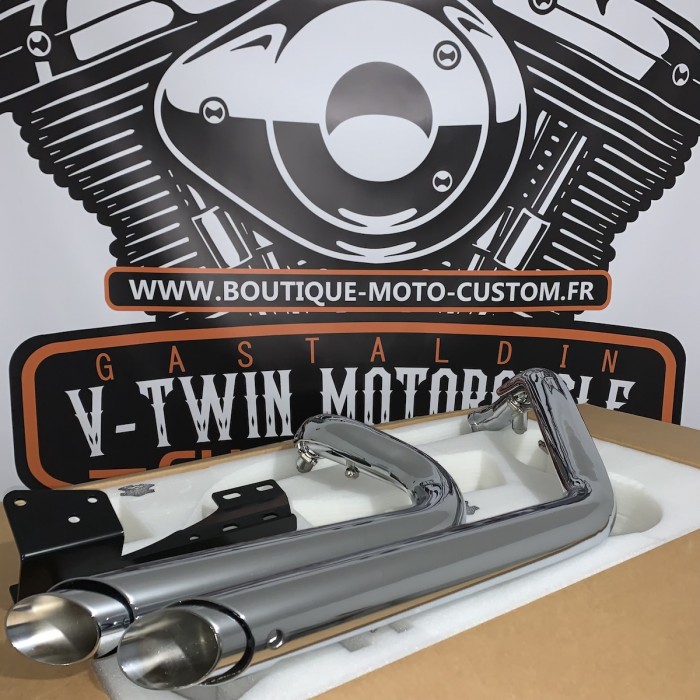 Bonsoir, alors oui c'est une ligne sans marque. j'ai économiser 200€ comparer à des vances hines. J'en avait sur mon ancienne harley mais je voulais une ligne sobre. Je les ai reçu des USA en 8 jours, tout est inclus, 379€ c'est le prix livré chez moi. RÉSULTAT : ma moto fait un bruit de dingue avec le filtre à 105€ merci merci merci !