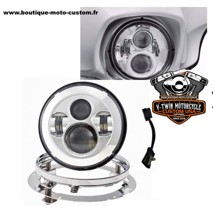 Magnificent 7 "LED headlight with 7" support and connection plug.