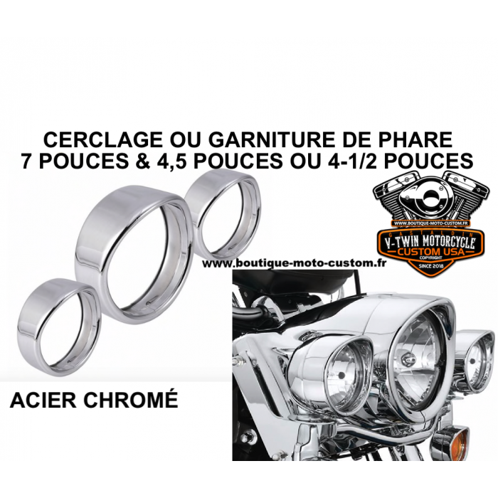Strapping kit - headlight trim 7 "inch and 4.5" in chromed steel for Harley Davidson