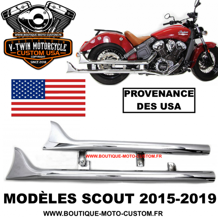 Magnifique ligne échappement Fishtail pour Indian modèles Scout, Scout Sixty et Scout Bobber de 2015 à 2019.