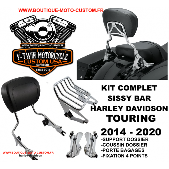 Detachable sissy bar / Harley Davidson Touring, Street, Glide, Road, Electra, CVO clips with a high quality leather pouffe!