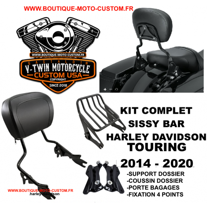 Detachable sissy bar / Harley Davidson Touring, Street, Glide, Road, Electra, CVO clips with a high quality leather pouffe!