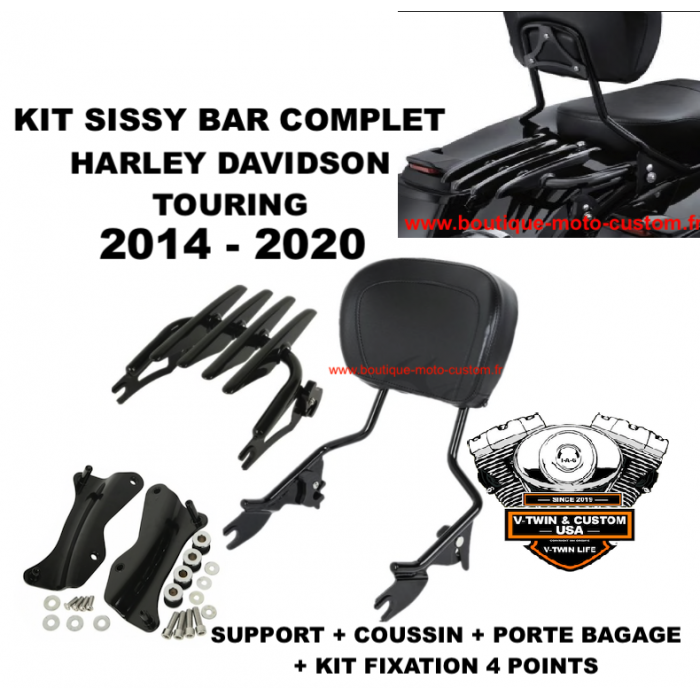 Detachable sissy bar / Harley Davidson Touring, Street, Glide, Road, Electra, CVO clips with a high quality leather pouffe!