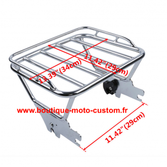 Sissy bar chrome avec porte bagage pour votre Harley-davidson qui apporte un look monstrueux à votre moto ! Compatible avec les modèles Softail de 1984 à 2017.