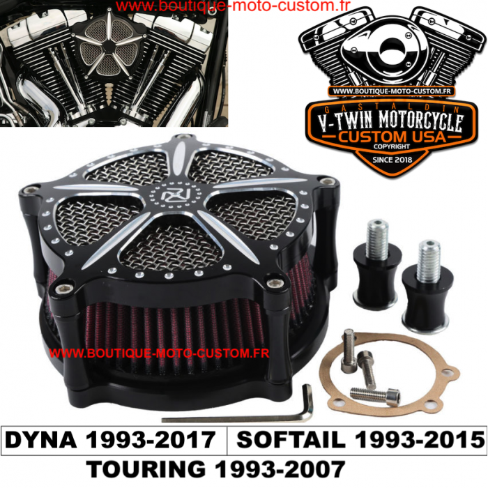 Kit filtre à air gros débit pour Harley Davidson Softail, Touring et Dyna