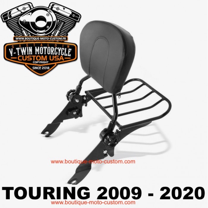 Un sissy bar réglable chrome avec son porte bagage pour votre Harley-davidson qui apporte un look monstrueux à votre moto ! Compatible avec les modèles Touring de 2009 à 2020.