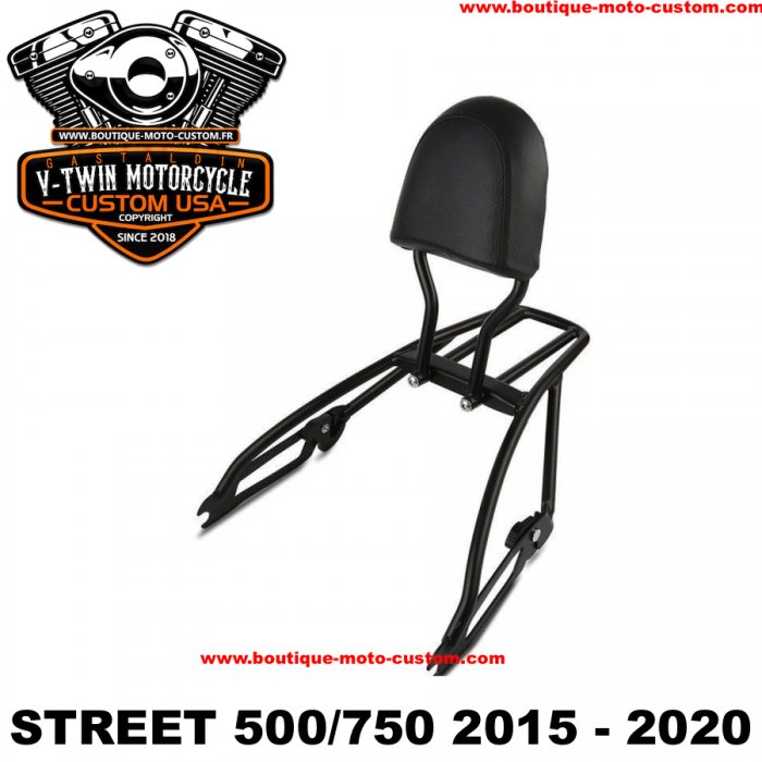 Un sissy bar noir avec son porte bagage a clips pour votre Harley-davidson qui apporte un look monstrueux à votre moto ! Compatible avec les modèles Street de 2015 à 2020.
