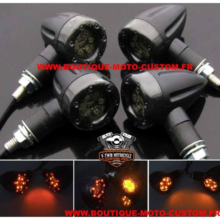 4 clignotants bullet Noir LED + feu stop + veilleuse 3 positions