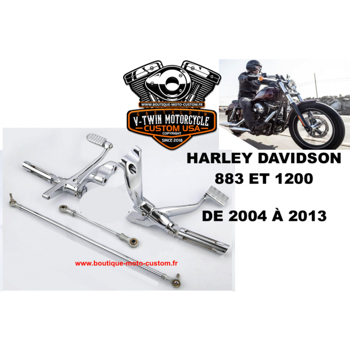 Commandes avancées / repose pied CHROME Harley Davidson 883 & 1200 Sportster, XL de 2004 à 2013