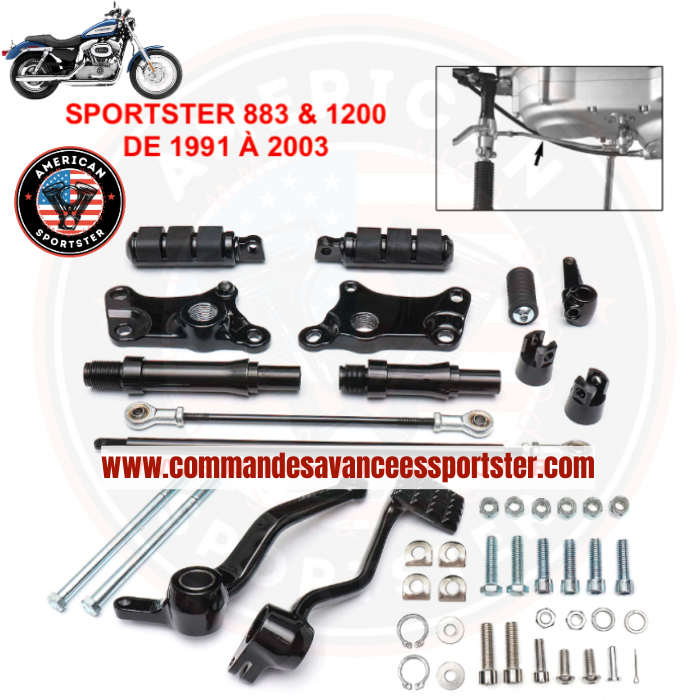 Commandes avancées / repose pied Noir Harley Davidson 883 & 1200 Sportster, XL de 1991 à 2003