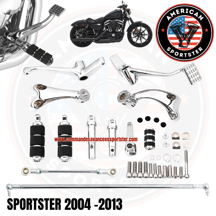 Commandes avancées / repose pied CHROME Harley Davidson 883 & 1200 Sportster, XL de 2004 à 2013