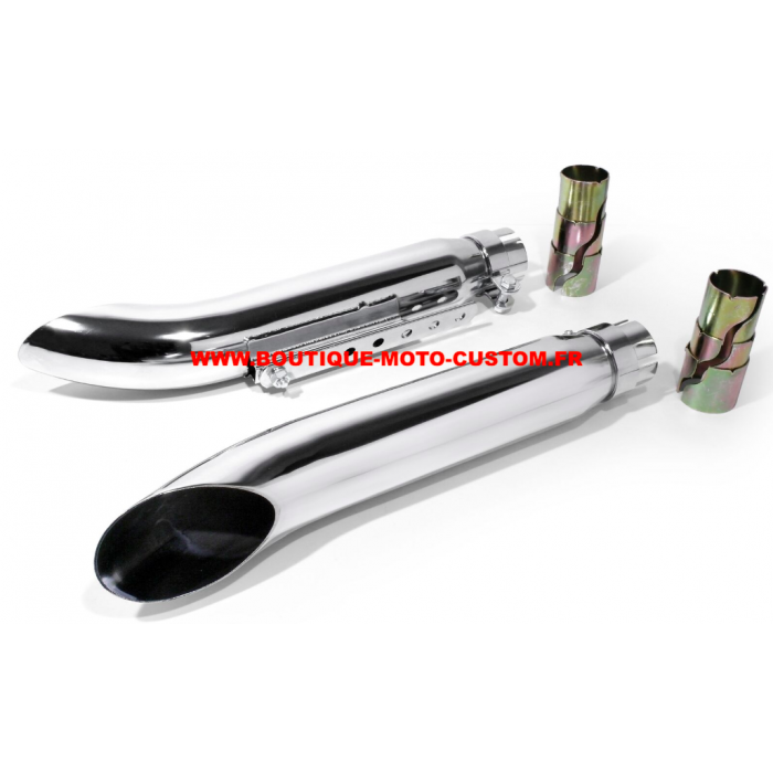 Silencieux Universel TURN OUT en Chrome pour vos projets, Harley Davidson, Honda, Yamaha, Bobber, Chopper etc ..