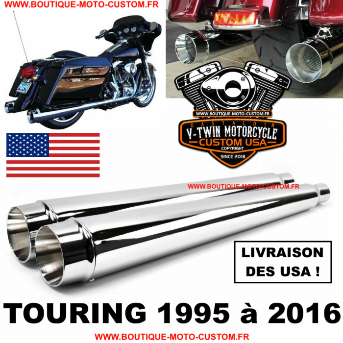 Silencieux, ligne d' échappement Harley davidson Touring, Bagger, ROAD, GLIDE, STREET, KING, ULTRA, ELECTRA, CLASSIQUE, se monte sur collecteur d'origine facilement !