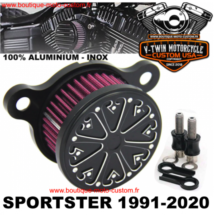 Boitier filtre à air aluminium avec filtre lavable pour Harley Davidson Sportster et XL 883 & 1200 de 1991 à aujourd'hui Carburateurs et injections.
