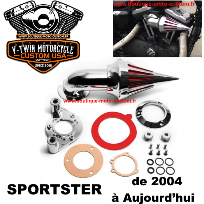 Boitier filtre à air aluminium avec filtre lavable pour Harley Davidson Sportster et XL 883 & 1200 de 2004 à aujourd'hui Carburateurs et injections.