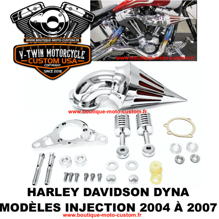 Kit filtre à air aluminium avec filtre lavable pour Harley Davidson modèles Dyna de 2004 à 2007 à injection.