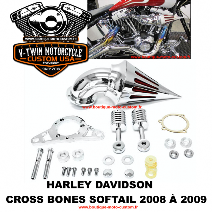 Kit filtre à air aluminium avec filtre lavable pour Harley Davidson modèles CROSS BONES SOFTAIL 2008 À 2009.