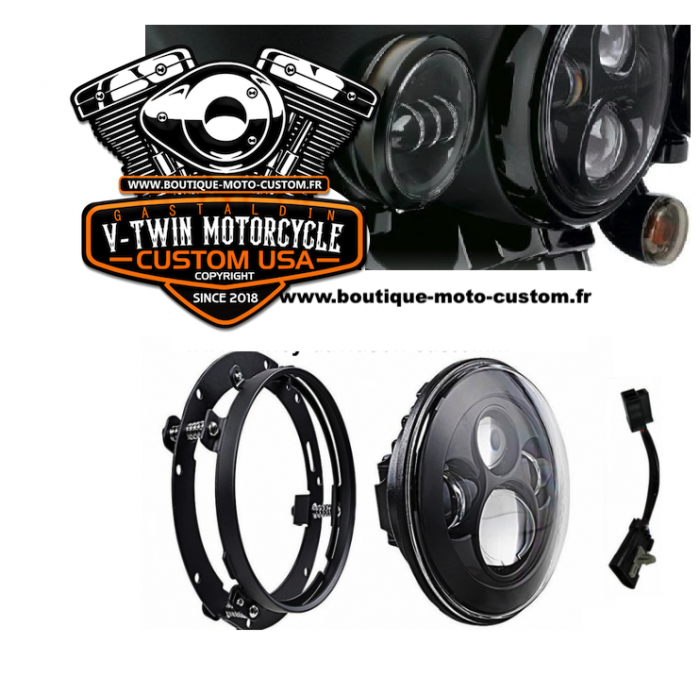 Projecteur phare 7" et support 7" pouces pour Harley Davidson