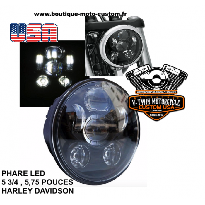 Projecteur phare 5 3/4", 5,75" pouces pour Harley Davidson