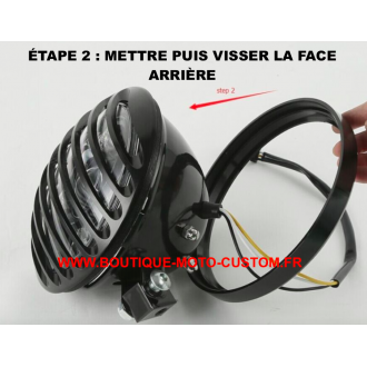 Cette magnifique grille de phare est faite pour toutes les Harley Davidson avec des feux avant en 5 " 3/4 ou 5,75 " pouce ce qui correspond a 14,6cm environ.