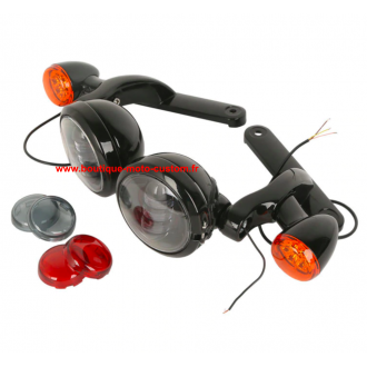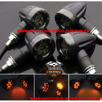 4 clignotants bullet Noir LED + feu stop + veilleuse 3 positions
