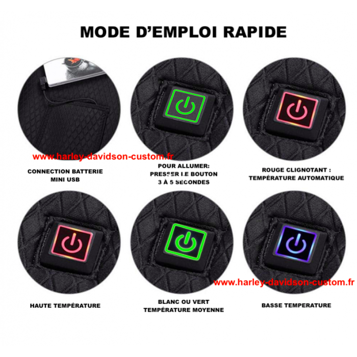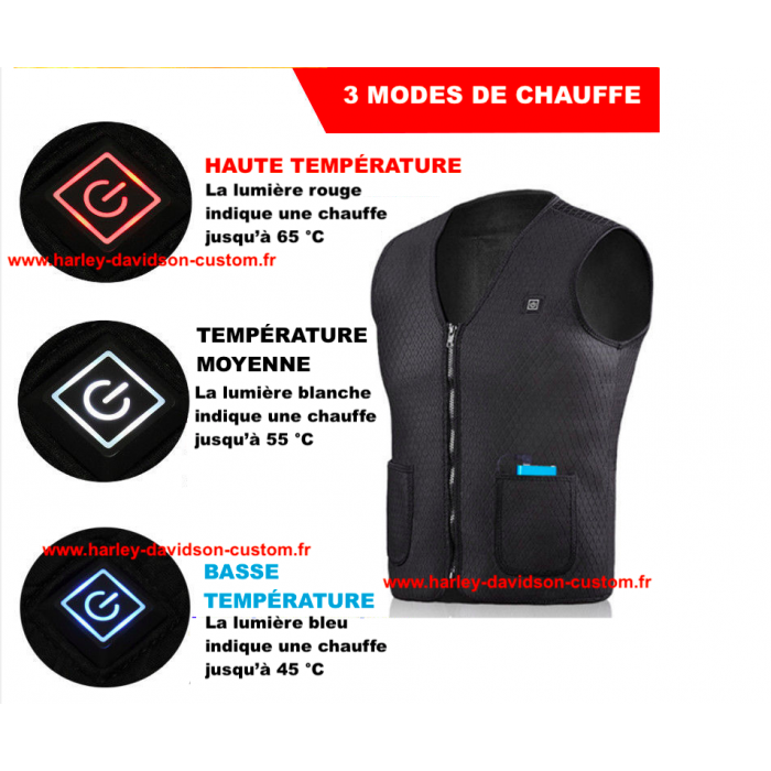 Vous pouvez ajuster la température selon vos besoin avec un bouton se trouvant sur la veste.